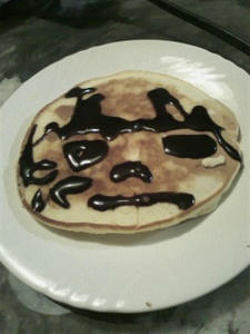 稚斗とお泊まり会というけとでホットケーキが夜ご飯ですー。稚斗に描いてもらった!